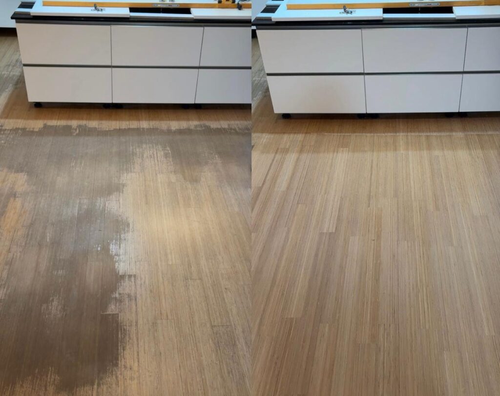 Iedere week tonen we hier een parketvloer die vakkundig door ons is geschuurd. Dit keer tonen we een Bamboe vloer in Gingelom (België) die door achterstallig onderhoud erg lelijk was geworden. Dankzij onze diensten kan onze klant weer genieten van een schone, nieuwe vloer 😉